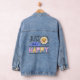Just Be Happy Women's Denim Jacket (Jean Jacket) Diese individuelle Damendenim-Jacke ist Ihr persönliches Modestatement! Personalisieren Sie es mit Ihrem Lieblingsbild oder -design, und zeigen Sie Ihren einzigartigen Stil überall hin. Mit dieser Jacke aus Baumwolle passt sich Ihre Individualität an.