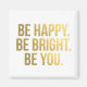 Seien Sie glücklich - seien Sie hell - seien Sie - goldener Typografie-Magnet.