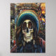 Ein glücklicher Schädel mit Hut und Kleidung lächelnd auf der lokalen markiert. Das ist eine künstlerische KI.