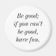 Der lustige Kühlschrankmagnet einzigartige Geschenkidee Geschenke Masse. Sei gut; wenn du nicht gut sein kannst, dann mach Spaß. Der sonnige, schwarz-weiße runde Kühlschrankmagnet, der eine tolle Geschenkidee machen würde.