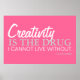 Kreativität ist das Medikament, ohne das ich nicht leben kann. Mit den Worten von Cecil B. DeMille. Dieses schwarze Poster in Grautönen und Weiß ist perfekt für Ihren Schüler.