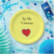 Sei mein valentinisches rotes Herz auf gelb Pappteller