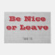 Eine lustige, aber herzliche Botschaft, die höchstwahrscheinlich ihre Aufmerksamkeit bekommen wird. "Sei nett oder verlassen" in fett formatiertem Schriftart auf grauem Hintergrund