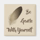 Zeige Unterstützung und kümmre mit dieser Erinnerung, um sich selbst mit Freundlichkeit und Mitgefühl zu Leckerei. Dieser Magnet für Kühlschrank ist ein großartiges Geschenk für einen Freund, der sich selbst zu sehr anstrengen möchte, oder als persönliche Bestätigung für sich selbst. Dieses Design enthält eine Feder in Braun- und den Text "Sei sanft mit dir selbst".