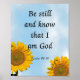 Psalm 46:10 Seien Sie still und wissen, dass ich Gott bin. Eine inspirierende Schrift mit hellen Sonnenblumen.
