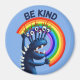 Freundlicher Magnet mit einer süße Figur, die einen Regenbogen hält, und dem Text "Sei freundlich". Denn manchmal müssen wir daran erinnert werden, dass es die Welt nicht besser macht, nur ein netter Mensch zu sein.