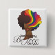 Afroamerikanerfrau mit dem natürlichen Haar. Haar hat den Regenbogen, der die LGBT Stolzflagge darstellt. Unter das Bild der Frau sind die Wörter, "sind glücklich, sind frei, sind Sie".