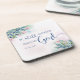 Untersetzer mit Bibelvers aus dem bekannten Schriftstellervers aus Psalm 46:10, "Sei still und weiß, dass ich Gott bin" in einem modernen, typografischen Stil, umgeben von schönen Aquarellfarben-Blume und Blätter. von Simply Scripture entworfen; Kunstwerke aus Design Cuts.