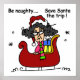 Sei unartig und rett dem Weihnachtsmann die Reise! T - Shirt, Pullover, Magnete, Tasse, Karten, Aufkleber, Totensäcke, Schlüsselanhänger, Mousepads, Kissen, Tischsets und andere Spaß-Bekleidung und Geschenke mit Stella im Schlitten des Weihnachtsmanns.