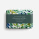 Eine Seifenverpackung mit Aquarell-grünen Blätter.