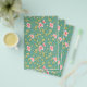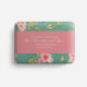 Eine florale Seifenverpackung mit einem hellgrünen und rosa Muster.
