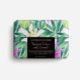 Eine Seifenverpackung mit einem Design von tropischen Blume.