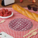 Seigaiha, Waves, Japanese, Burgundy and White Pappteller