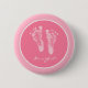 Ein niedlicher rosa Geburtsmitteilungs-Babyduschen-Gastgeschenkknopf mit neugeborenen Babyabdrücken auf einem gerahmten Hintergrund des noblen Kreises. Personifizieren Sie, indem Sie den Namen des wertvollen neuen Babymädchens dem kundenspezifischen Textbereich hinzufügen. Ursprüngliches Kunst ©TracieKaska