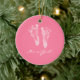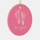 Eine sentimental rosa Andenkengeburtsmitteilungs-Fensterverzierung für ein Babymädchen-Kinderzimmer mit niedlichen neugeborenen Babyabdrücken. Personifizieren Sie, indem Sie den Namen des wertvollen neuen Babymädchens, des Geburtsdatums und der Maße dem kundenspezifischen Textbereich hinzufügen. Ursprüngliches Kunst ©TracieKaska
