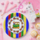 Das Party ist ein Junge, Choo Choo Train Babydusche Papier Teller mit fett prima Farben, hell rot, blau, grün, gelb und orange.