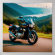 Dieses Poster verfügt über ein Motorrad vor einem atemberaubenden natürlichen Hintergrund.