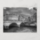Ein Schwarz-Weiß-Foto der Seine und eine Brücke in Paris, Frankreich.