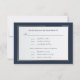 Cette écriture marine sur fond blanc avec une bordure dorée et bleue marine est une carte de réponse RSVP et une carte de sélection de menu élégantes. Le dos a un fond bleu marine avec vos noms et une esperluette dorée. Peut être utilisé pour les mariages, les renouvellements de vœux ou les anniversaires