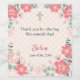 Creme, helles Erröten, Korallenrosa und weiche Grüntöne verleihen dieser Einladung ein wunderschönes Blumenmuster. Verziert mit einem Kreuz. Kasse oder Schwesterladen www.pixieprints.com für alle Ihre Einladungen!