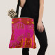 This hand drawn tote bag bursts with bold pink, brown, and yellow geometric shapes and wavy accents. The front has an inspiring quote: “I do what I love & I love what I do.” The back has a customizable name band, so you can make it truly yours. With sturdy black handles and plenty of room, it’s perfect for books, groceries, or travel essentials.