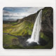 Dieses Foto kennzeichnet den Seljalandsfoss Wasserfall mit Wolkenbildung in Abstand in Island.