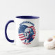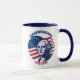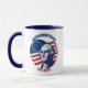 The Semiquincentennial celebrated in this design where a portrait of George Washington is displayed alongside the floating Betsy Ross, featuring the 13 stars referring to the 13original colonies that were to become the first 13 states of America; this design by Cheerful Madness!! is using a limited palette of blues, red and white. Fully customisable.