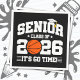 This senior year class of 2026 basketball design is perfect for high school seniors or college graduates. Great for the senior class basketball players celebrating their last school year basketball season before their 2026 graduation! Features "Senior Class of 2026 - It's Go Time!" senior quote in a varsity style athletic font w/ graduation cap & tassel basketball graphic for the proud 2026 senior class basketball player. Great for 2026 senior year basketball games all school year long!