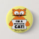 Señor Gato Ich bin eine Mustache Katze! Niedlicher Cartoon Katzenknopf. Dieses niedliche Knopfdesign zeigt die berühmte Schnurrbart-Katze Señor Gato mit einem Schild, das lautet I M A MUSTACHE CAT!