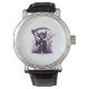 Uhr, Vintage Männeruhr mit schwarzem Lederarmband