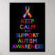 Behalt Ruhe und unterstütze das Bewusstsein für Autismus. Autismus Version von Behalt Calm und Carry auf motivierend Poster mit Autismus Band und Text in lebhaften Autismus Spektrum Farben.