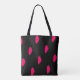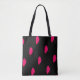 Dieser Totbeutel ist illustriert mit einem fuchsienartigen, blumenblättrigen Muster, das sich abwechselnd über die gesamte Oberfläche wiederholt. Der Hintergrund ist schwarz.