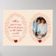 Eleganter und schicker Stil mit doppelter Blumengestalt mit einem sentimentalen Zitat für Mama auf der einen Seite und auf der anderen Seite bereit, mit Ihrem eigenen Foto mit Mama zu personalisieren. Rote Kalligraphie, die die besondere Hingabe für Mama hervorhebt, auf einem weichen pastellfarbenen Hintergrund und zwei niedlichen kleinen Herzen am unteren Rand des Rahmens. Der beste einzigartige Sake für Muttertag.