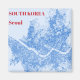 Ein Magnet, der eine Straßenkarte von Seoul im Südkorea zeigt, eine riesige Metropole, in der moderne Wolkenkratzer, High-Tech-U-Bahnen und Pop-Kultur buddhistische Tempel, Paläste und Straßenkunden treffen.