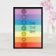 Un design graphique des sept chakras sur une carte de voeux. La carte contient des modèles texte pour votre personnalisation.