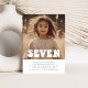 Une 7ème invitation à l'anniversaire avec votre propre photo et le mot 'sept' dans une police de style super sur le dessus. Parfait pour votre fête d'anniversaire à thème rétro !