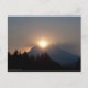 Ein Foto der Morgensonne, das sich über dem Wappen des Berggipfels des Berges Rainier erhebt.