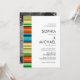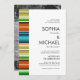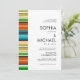 Ein Set serape sommerlichen Farbmuster Hochzeit lädt in einem offenen und minimalen Stil ein. Sie zeichnen sich durch ein lebendiges Farbstreifenmuster auf der Seite aus, kombiniert mit sauberen Textelementen auf der anderen Seite.