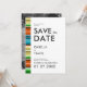 Ein Set von schön gedruckten Serienmuster Hochzeit speichern das Datum in einem offenen und minimalen Stil erinnert an die Farben des Sommers. Serape Stoff ist in der mexikanischen Kultur für Zeremonie, Feiern und Dekoration beliebt. Die Streifenfarben erinnern an die bunte Frühlingssaison.