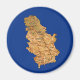 Das Design auf diesem Magneten zeigt eine Karte Serbiens mit einem farbigen Hintergrund. Fügen Sie Ihrem Zuhause ein kleines Serbisches Aroma hinzu.