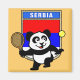 Diese hübsche kleine Panda Lieben, um auf dem Platz zu gehen und trifft ein paar Bälle. Panda spielt vor einer großen Flagge Serbiens. Das ist ein großartiges Design für jeden, der Lieben Tennis zu spielen, Tennis zu beobachten oder nur Lieben niedliche Pandas.