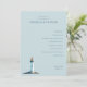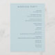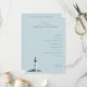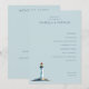 This elegant wedding program features a serene light blue background with a minimalist layout, creating a calm and inviting atmosphere. The design includes a charming lighthouse illustration at the bottom left, adding a touch of coastal charm. Centered text in a classic serif font outlines the ceremony details, ensuring clarity and formality. Customizable date and location placeholders allow for personalization, making it perfect for couples seeking a modern yet understated aesthetic for their special day.