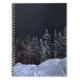 Verbringen Sie eine ruhige Zeit in der schneebedeckten Winternacht und spielen Sie Notizen, Gedanken und Muskeln in diesem Serene Blue Winter Forest Spiral Notebook. Foto © Joshua J Barks