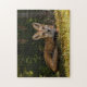 Ein niedlicher junger Fuchs gleicht sich ruhig von seinem schattigen Versteck ab.