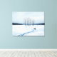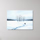 A serene impressionist winter landscape capturing the quiet beauty of a snow-covered field beneath a soft overcast sky.