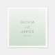 This wedding napkin features a minimalist and elegant design with a soft mint green gradient background that transitions from darker at the top to lighter at the bottom. The layout is simple, focusing on clean lines and ample negative space, creating a serene and sophisticated mood. Typography plays a central role, with names in bold serif fonts and "and" in an elegant cursive script, all set against a calming color palette of pale greens and dark gray text. Perfect for a formal yet intimate occasion, this design exudes freshness and calmness, making it ideal for celebrating love and unity.