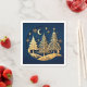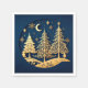 ‘Serene Papercut Pines’ combines the artistry of traditional paper cutting with rich navy blues, golden slopes, and elegant pruned Christmas trees. Stars and snowflakes dot the winter sky, where a peaceful moon rises above the forest. The circular framing and layered details evoke handcrafted charm and seasonal sophistication.