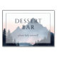 This wedding tabletop sign features a serene, nature-inspired design with soft pastel hues of light blue and pink, creating a tranquil atmosphere. The minimalist layout includes stylized mountain peaks and pine tree silhouettes, enhancing the dreamy, ethereal quality of the watercolor art technique used. Bold serif typography announces "DESSERT BAR" while an inviting italicized note encourages guests to indulge. Perfect for adding a touch of romanticism and relaxation to your event, this sign sets a welcoming mood for any dessert station.