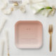 These elegant wedding plates feature a minimalist design with a soft gradient background transitioning from warm peach to cream, creating a serene and sophisticated look. The layout is clean and balanced, showcasing centered typography in a modern sans-serif font that adds a touch of refinement. Perfect for weddings or formal events, the understated style emphasizes clarity and simplicity, making it an ideal choice for those who appreciate subtle elegance.