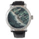 Uhr, Vintage Männeruhr mit schwarzem Lederarmband